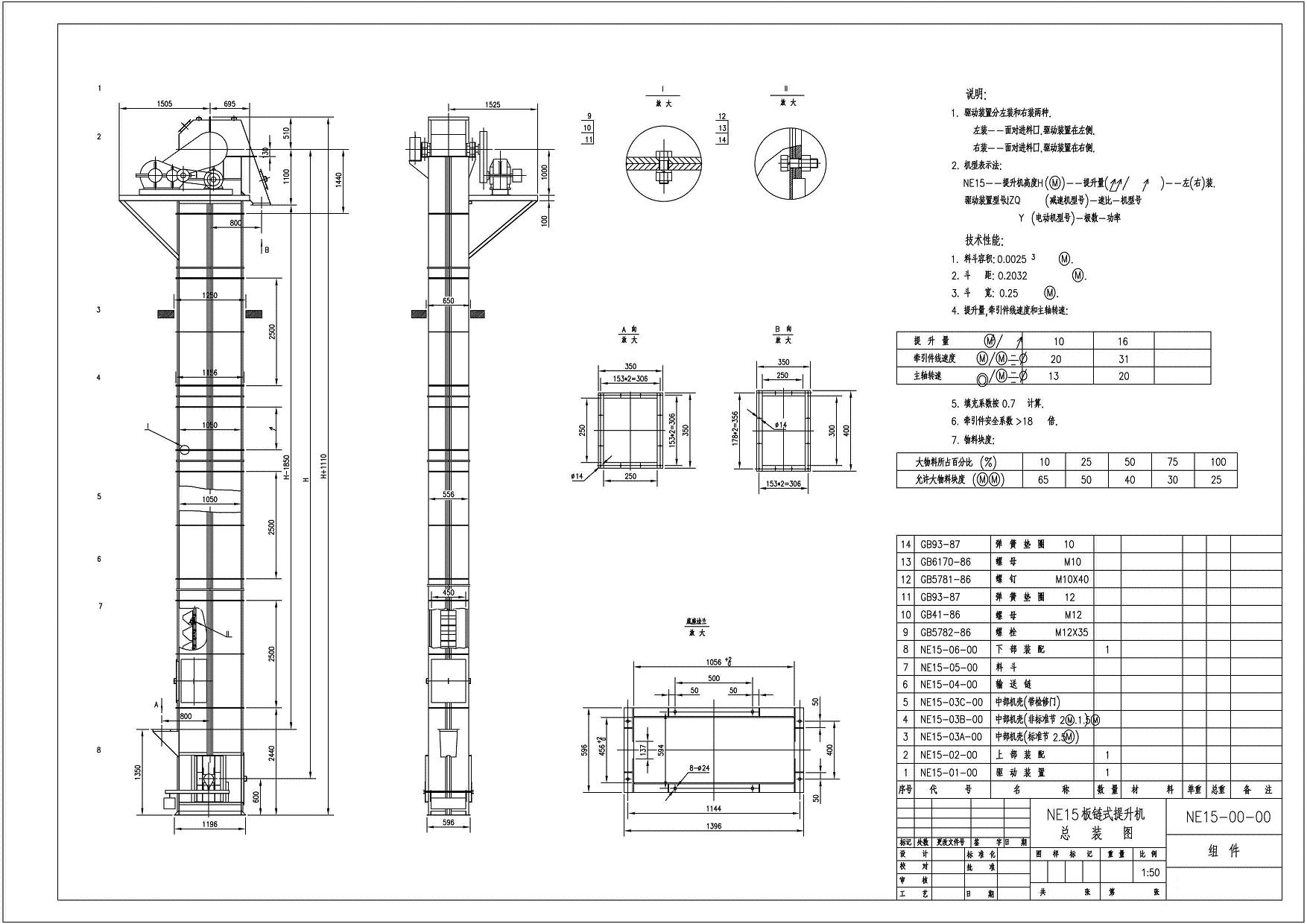當前位置:首頁 > 提升機圖紙 > NE15斗式提升機外形尺寸總裝圖